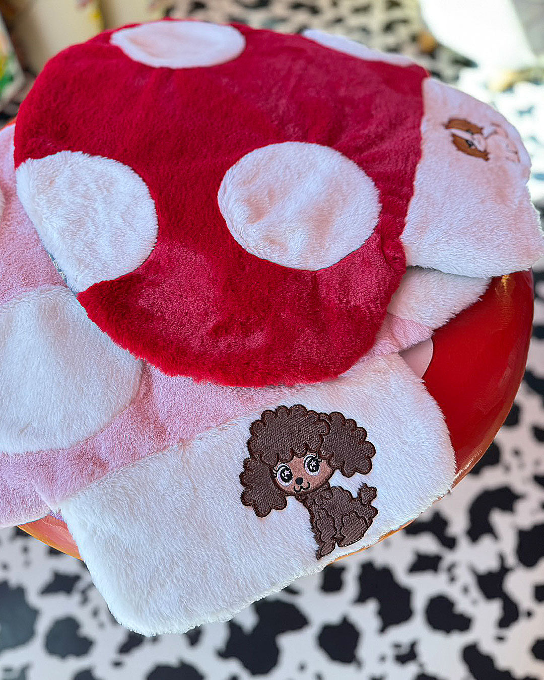 ☆きのこ マット☆J&Kanimalsから、きのこ好きには、たまらないマットが登場しました~♪ふぁふぁで肌触りの良いファを使用して、J&Kオリジナルキャラクターをポイントでつけました~(^^♪中に綿が入っていますので、ほどよい厚みがあります♪裏地にはデニムを使用してポップに仕上げました\(^_^)/丸みのある、きのこマットがお部屋をキュートにしてくれますね~(*゜▽゜*)Color:ピンク/レッドキャラクター:はるちゃん・こなつちゃん・まるちゃん・はなちゃん・シュガーちゃん/ホワイト・シュガーちゃん/ブラウン・シュガーちゃん/ピンク・シュガーちゃん/シルバーColor from left:Haru / Konatsu / Maru / Hana / Sugar-White / Sugar-Brown / Sugar-Pink / Sugar-Silver¥6600(税抜¥6000)material:(フェイクファー)ポリエステル100%