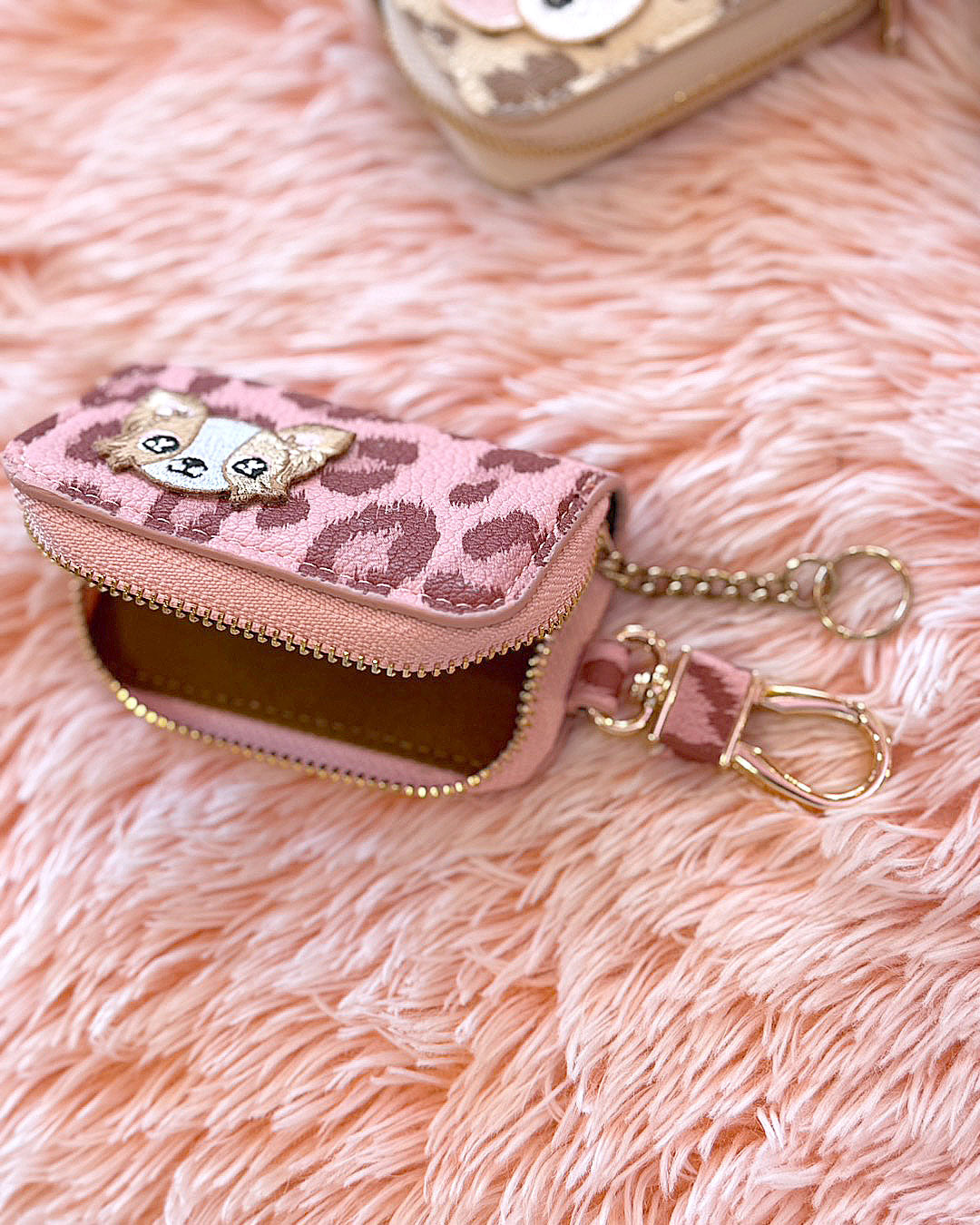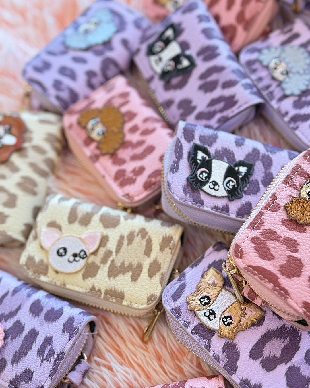 ☆ミニケース☆J&Kanimalsから、レオパード柄のミニケースが登場しました~♪ガーリーなレオパード柄にJ&Kオリジナルキャラクターの刺繍ワッペンがポイントのミニケース=*^-^*=高級感のあるゴールドファスナーと金具で可愛いだけではなく上品さもプラス(*^^)v持っているだけで気分が上がるミニケースです~♪お友達のプレゼントにもオススメです(*゜▽゜*)左からcolor:ピンク/ベージュ/パープルキャラクター:はるちゃん・こなつちゃん・たまちゃん・まるちゃん・はなちゃん・シュガーちゃん/ホワイト・シュガーちゃん/ブラウン・シュガーちゃん/ピンク・シュガーちゃん/シルバーColor from left:Haru / Konatsu / Tama/ Maru / Hana / Sugar-White / Sugar-Brown / Sugar-Pink / Sugar-Silver¥3300(税抜¥3000)
