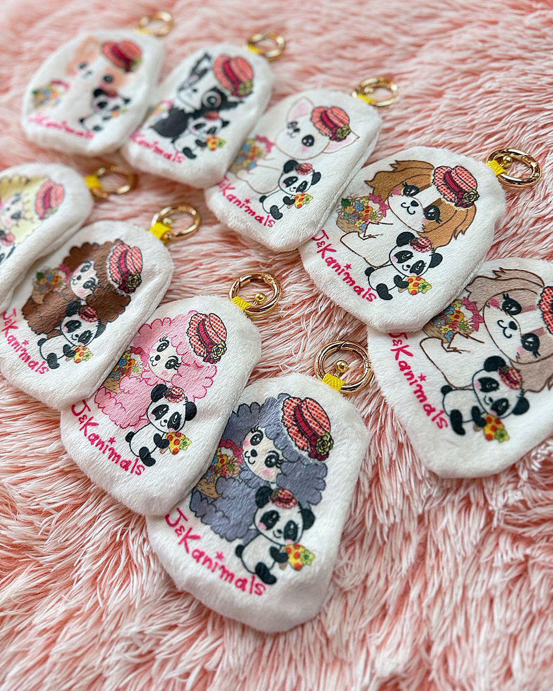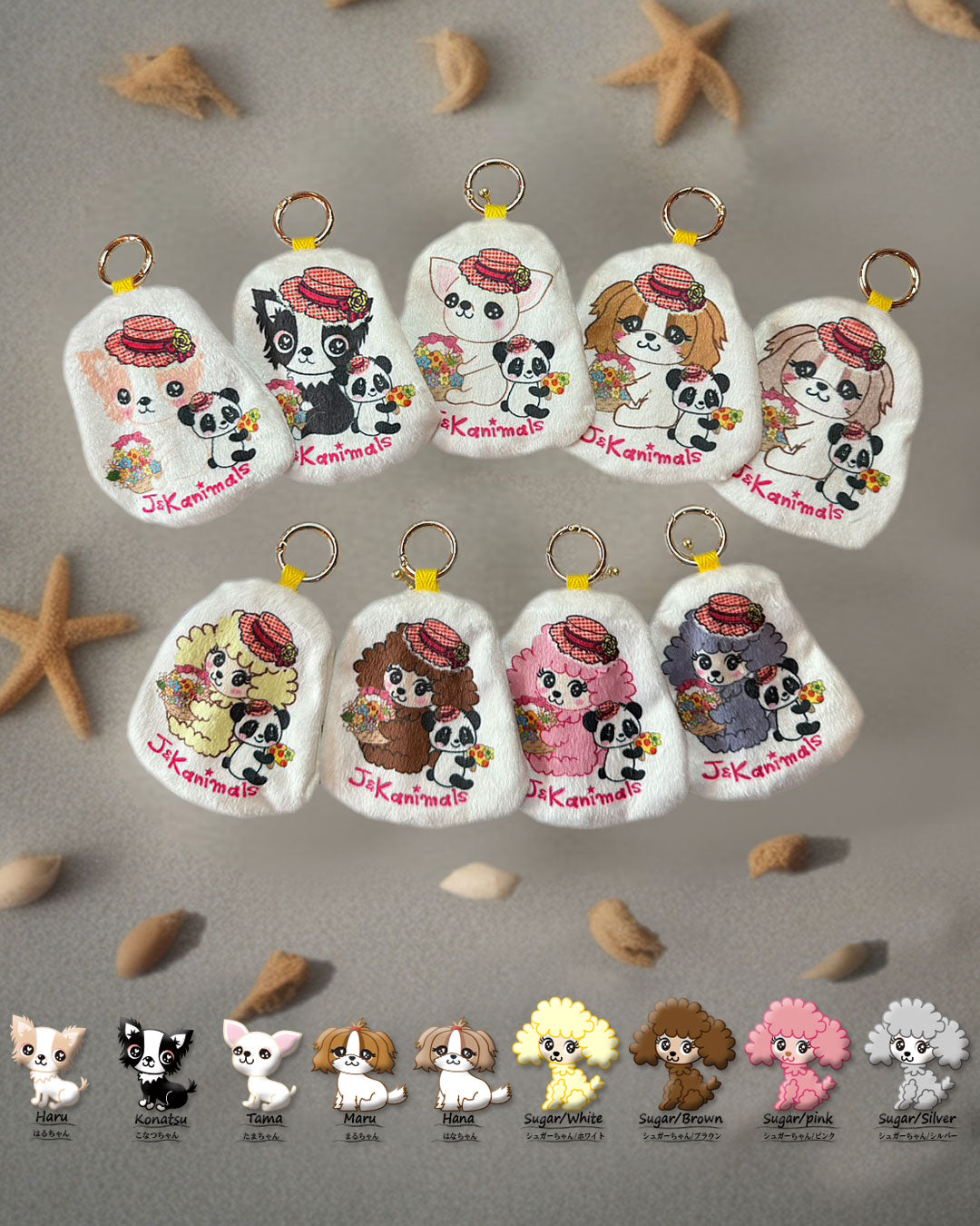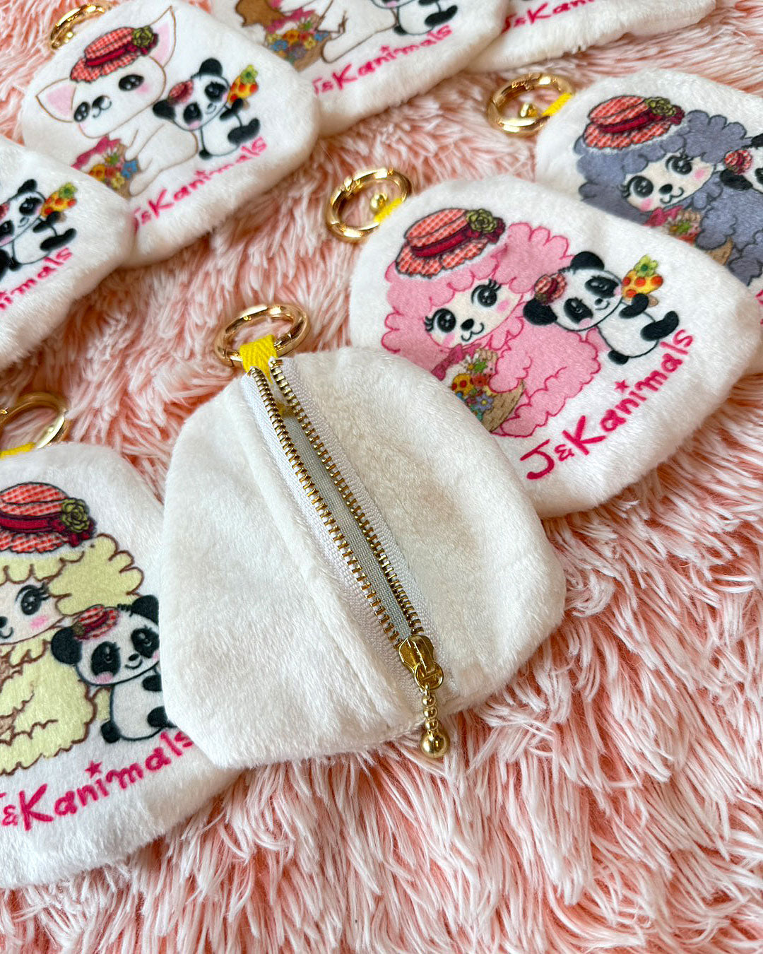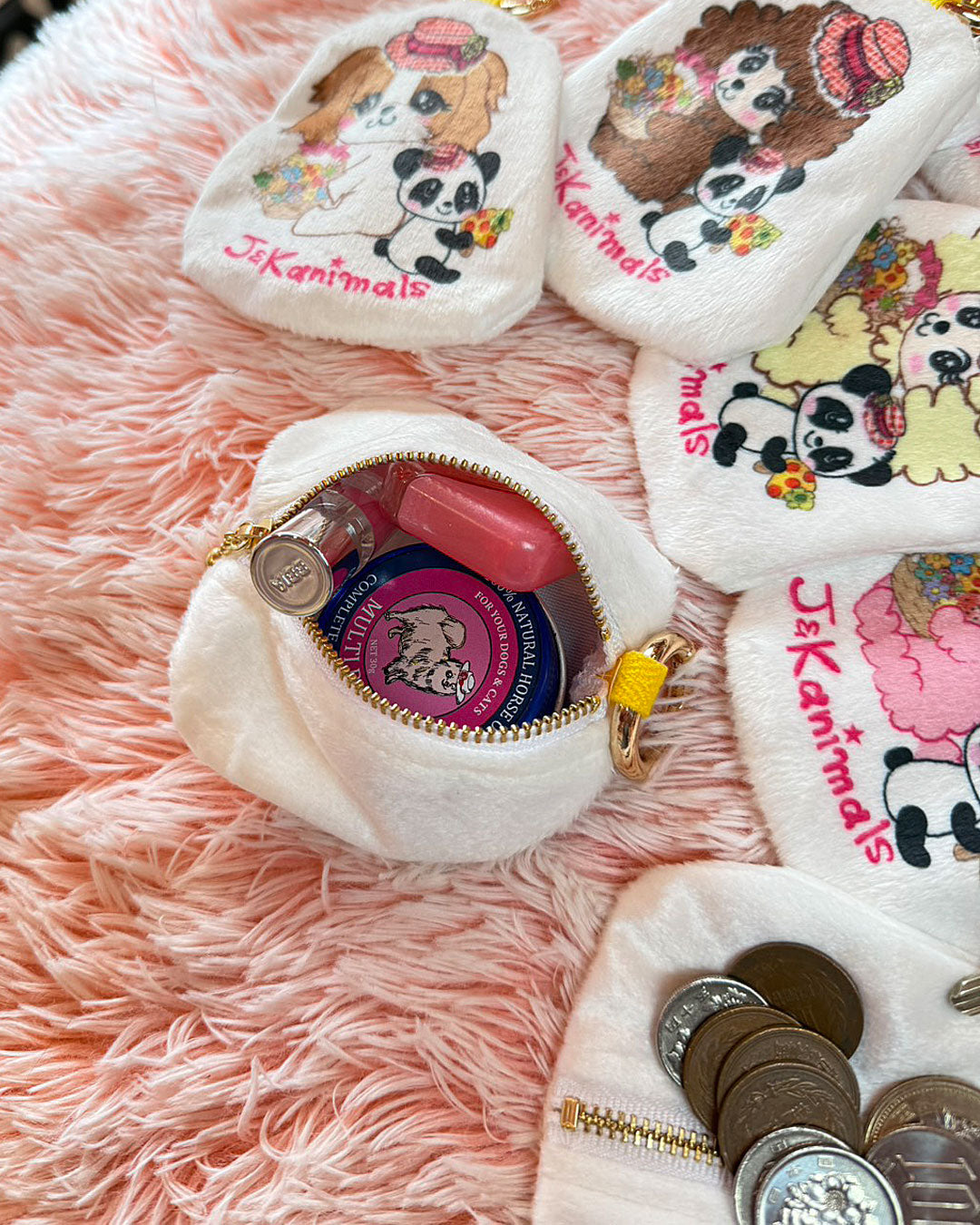 ☆ふわもこミニポーチ☆J&Kanimalsから、ふわふわ手触りのミニポーチの登場です~♪J&Kオリジナルキャラクターとベレーちゃんのコンビがとてもキュートなポーチです~(^^♪アクセサリーやリップ・目薬など小物収納にピッタリ♪もゴールドリングでバッグやポーチにも簡単に付けれます~(*゜▽゜*)キャラクター:はるちゃん・こなつちゃん・たまちゃん・まるちゃん・はなちゃん・シュガーちゃん/ホワイト・シュガーちゃん/ブラウン・シュガーちゃん/ピンク・シュガーちゃん/シルバーColor from left:Haru / Konatsu / Tama / Maru / Hana / Sugar-White / Sugar-Brown / Sugar-Pink / Sugar-Silver¥2200(税抜¥2000