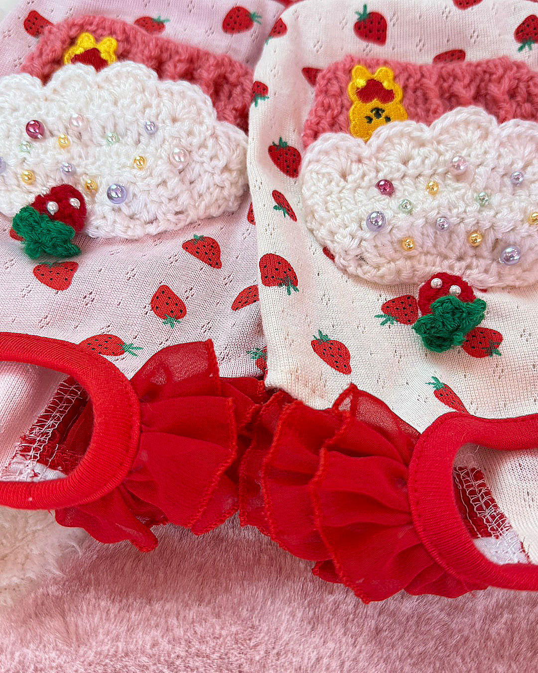(入荷は4月中旬~4月下旬予定)ご予約のお客様は7%オフでご購入できます♪ (メール・LINE@・FBにて、ご連絡いただければ、ご予約できます)☆いちごケーキTシャツ☆ KOHARUブランドから、キュートなトップスの登場です~♪伸縮性の良い布地に1点1点手編みしたケーキのモチーフをつけました♪ケーキにはビーズをつけてポイントにしました=*^-^*=いちご柄と透かし模様が入った布地とカップケーキがとても可愛いTシャツです♪袖はシフォンでフリフリの袖にしました。袖まわりにボリュームがありますので前から見ても、オシャレですよ(^^♪女の子にはもちろん♪男の子にもオススメのTシャツです~(*゜▽゜*)左からカラー:ホワイト/ピンク4S:4S-L¥8580(税抜¥7800)→7%off¥7979(税抜¥7254)3S:3S-L¥8800(税抜¥8000)→7%off¥8184(税抜¥7440)SS:SS-L¥9020(税抜¥8200)→7%off¥8388(税抜¥7626)S:SL¥9240(税抜¥8400)→7%off¥8593(税抜¥7812)M¥9460(税抜¥8600)→7%off¥8797(税抜¥7998)素材:コットン100%