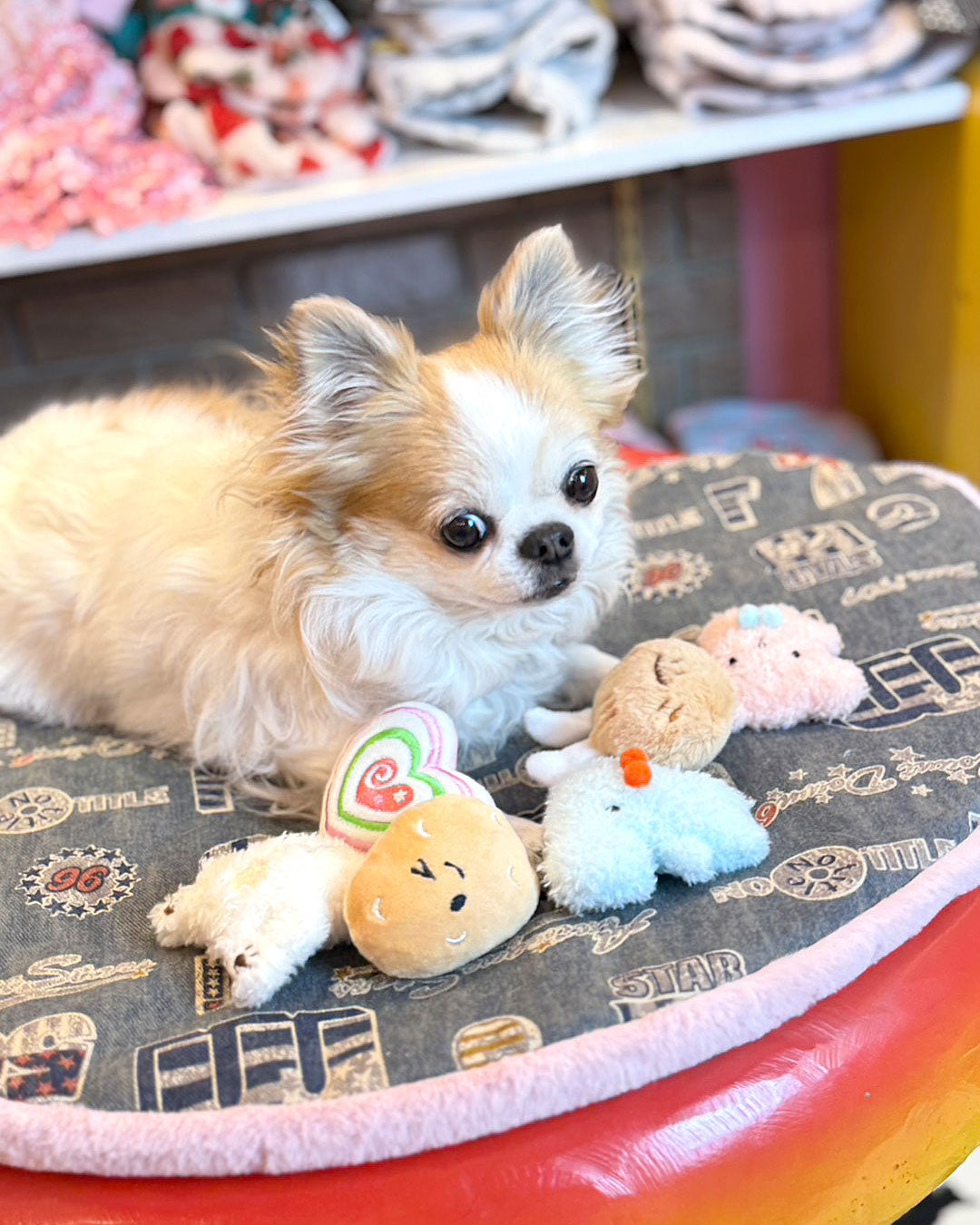 柔らかい布地が大好きなわんちゃん大注目!中に泣き笛が入っていますので、かむと音がしますヨ♪